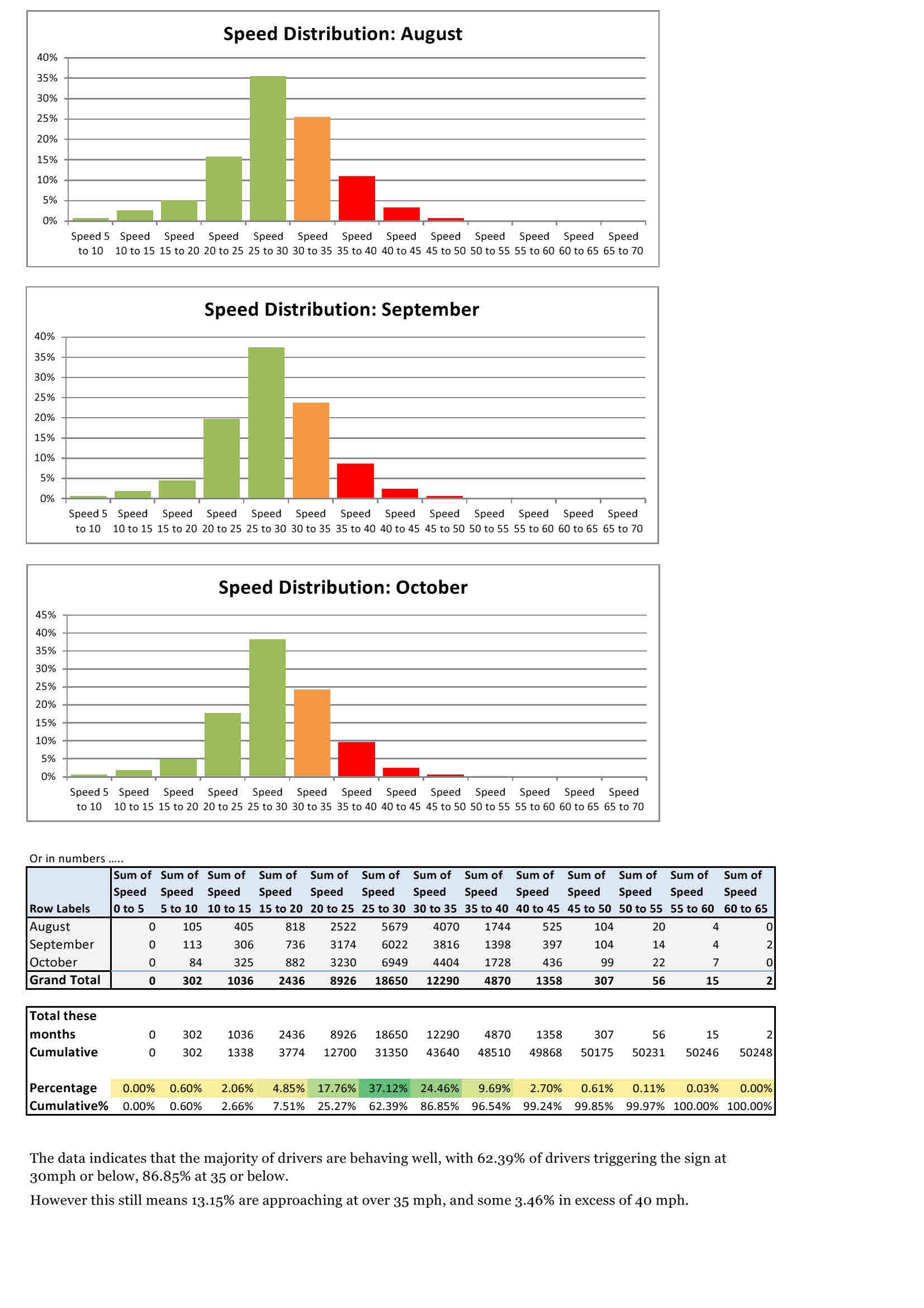 The now familiar sight of vehicle activated signs reflect a significant investment in encouraging good and respectful behaviour from our road users. As a council we feel it is appropriate to share the information that these signs can produce - so that we can all be aware of our responsibilities and the beneficial impact of these signs.